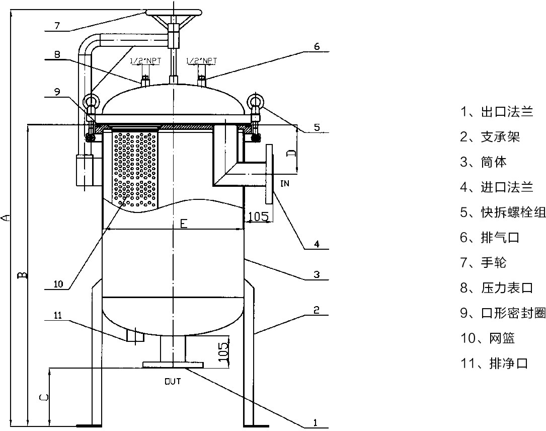 ※結(jié)構(gòu):容器、支撐網(wǎng)籃、法蘭、密封圈。